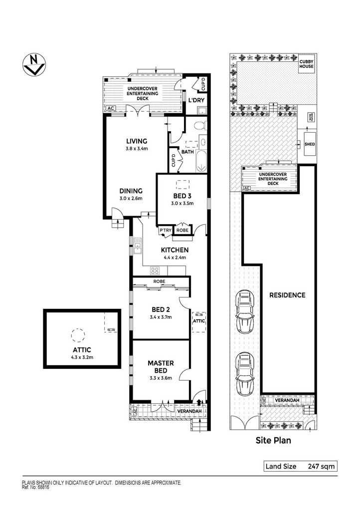 Driveway parking for two cars plus a storage shed at the rear