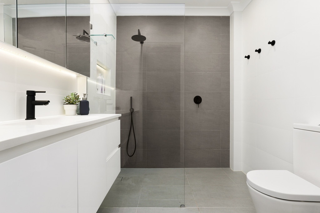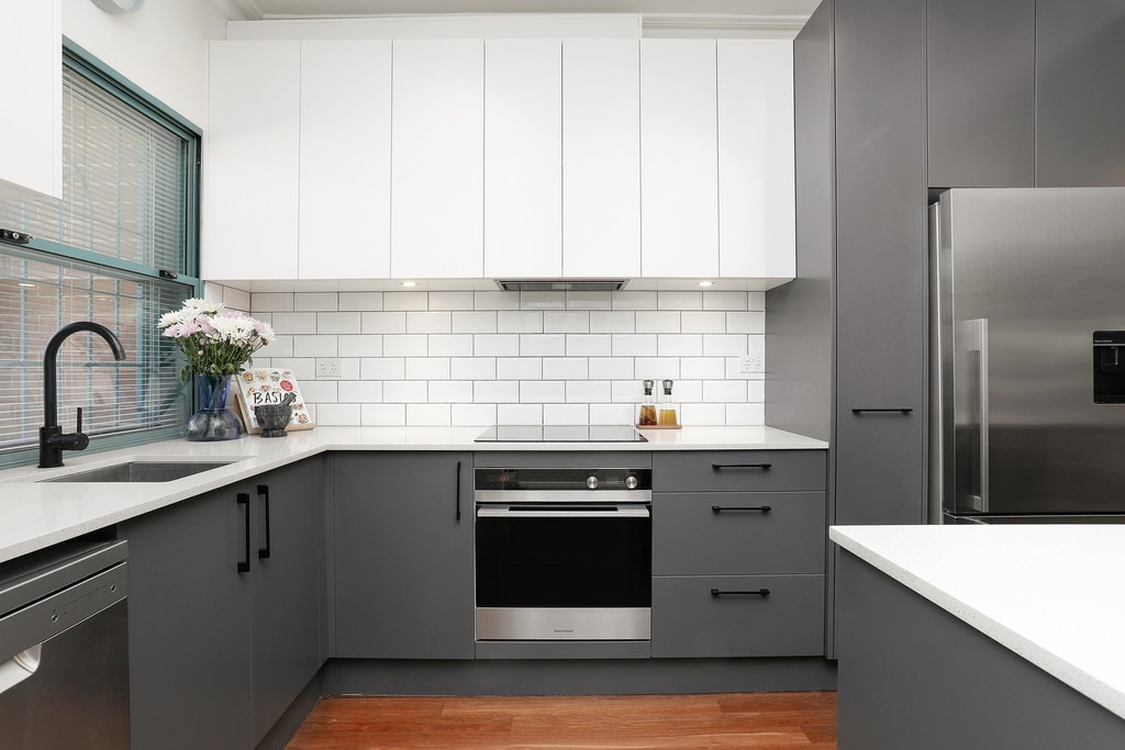 Quality modern kitchen with pyrolytic oven, induction cooktop, ducted rangehood, and dishwasher